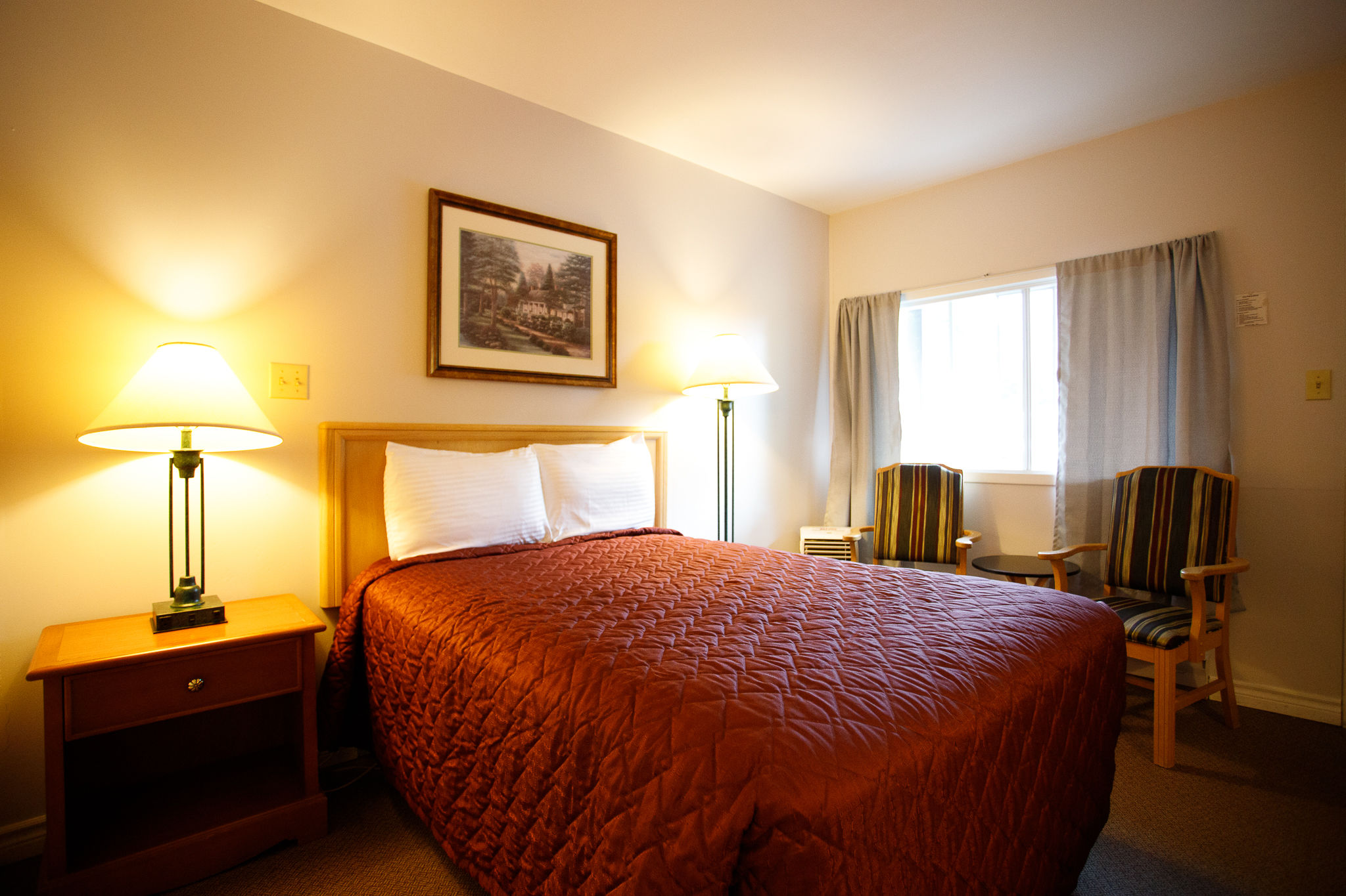 Our motel accommodations include 48 units (Double and Queen units; all are now non-smoking; 24 are drive-up units), with 4-piece bath, cable television and free Wi-Fi. Visa, MasterCard and Direct Debit are accepted. No cash or debit deposits accepted, only credit card pre-authorizations.
